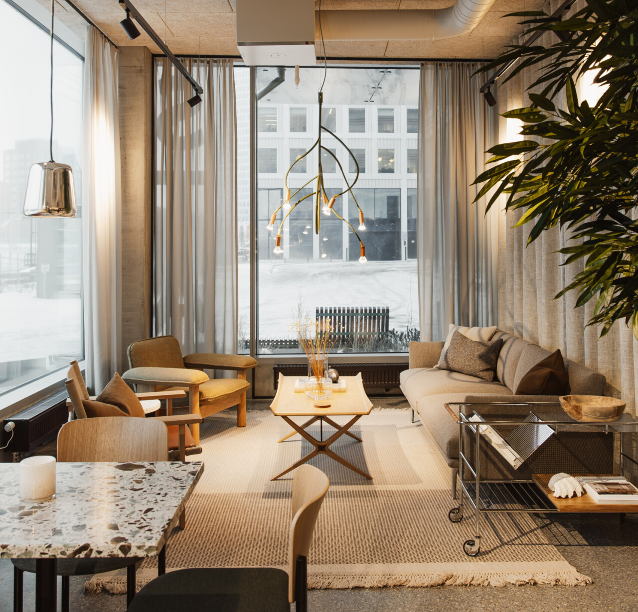 Målet var att skapa en plats där människor vill vara, mötas och återvända. Genom en omsorgsfull gestaltning, hållbara materialval och en miljö som uppmuntrar till både arbete, möten och pauser har entréplanet blivit mer än en passage. Resultatet är en samtida lobby där vardag, arbete och möten får ta plats i en miljö som känns både tidlös, välkomnande och en aning bekant.