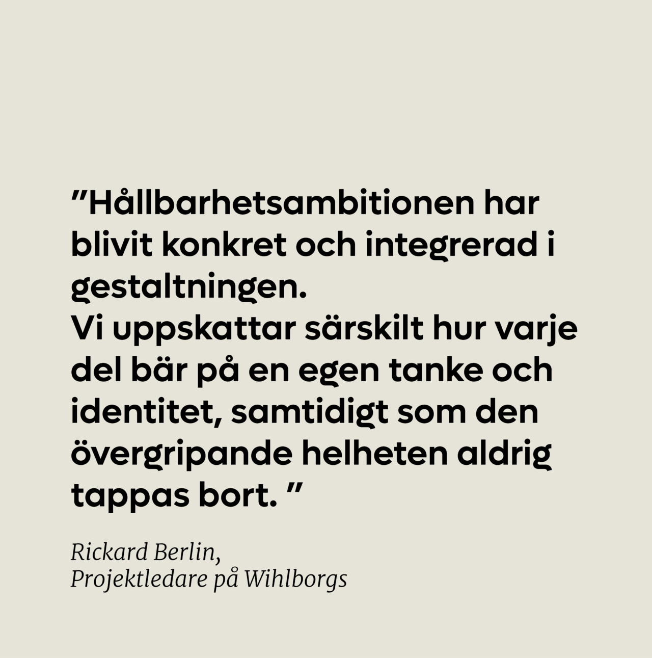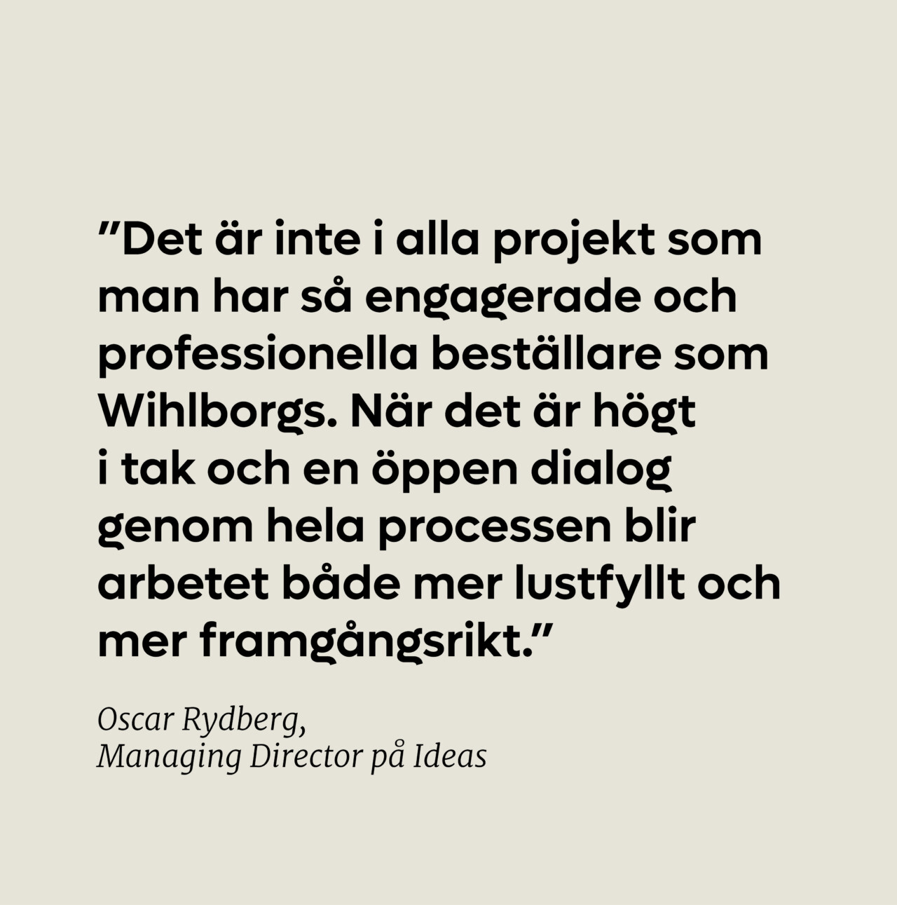 ”Det är inte i alla projekt som man har så engagerade och professionella beställare som Wihlborgs. När det är högt i tak och en öppen dialog genom hela processen blir arbetet både mer lustfyllt och mer framgångsrikt.”