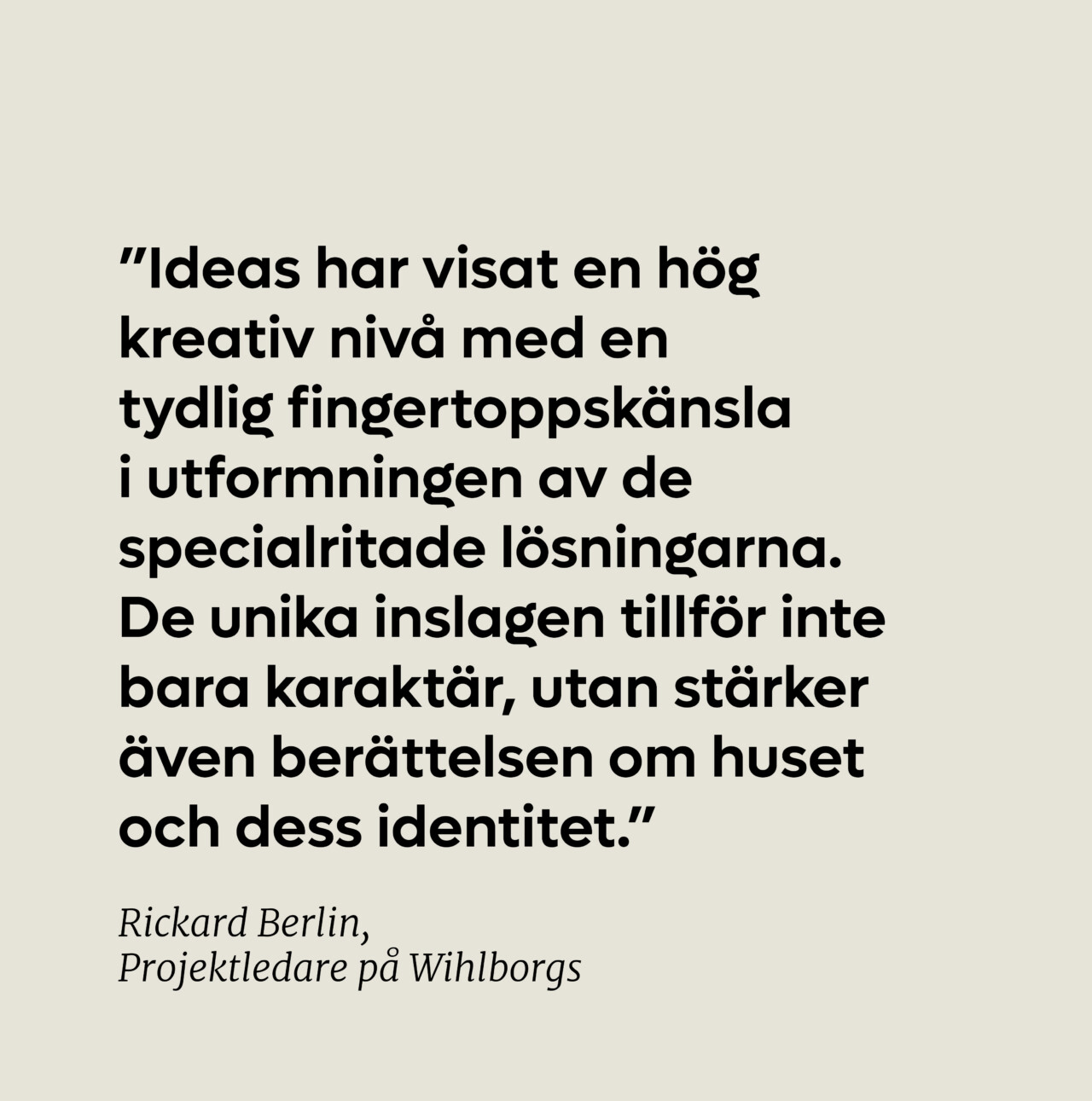 ”Genom samarbetet med Ideas har vi skapat en entré och mötesplats som tydligt speglar husets identitet och ambition. Ett levande nav med stark karaktär – en plats som gör ett bestående första intryck och som vi är stolta över att visa upp. ”